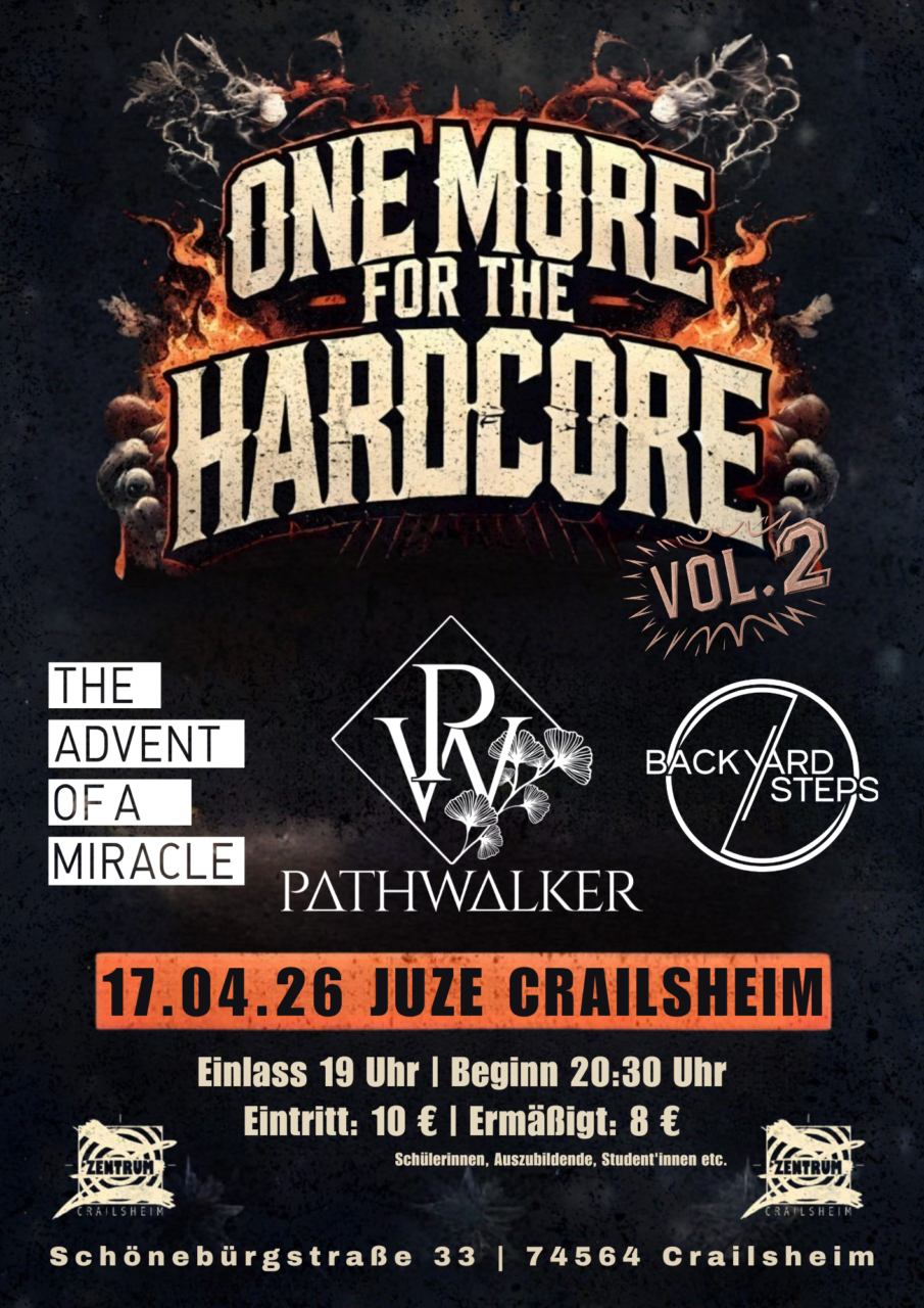 Am 17.04.26 geht One More for the Hardcore in die zweite Runde – laut, intensiv und voller Energie. Freut euch auf einen Abend mit fetten Riffs, Breakdowns und purer Live-Power!